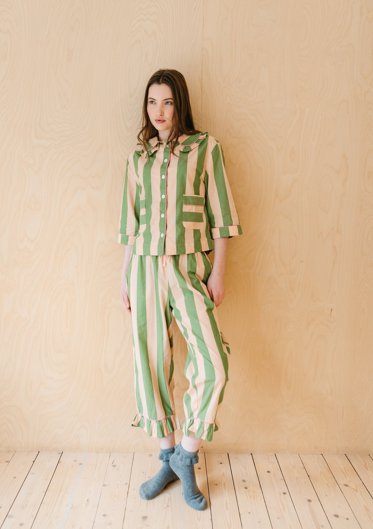 Thank you for leaving a review for our Cropped Cotton Pyjamas in Green Stripe, Jackie! It’s wonderful to hear that you love them — we hope you continue enjoying them ❤️
