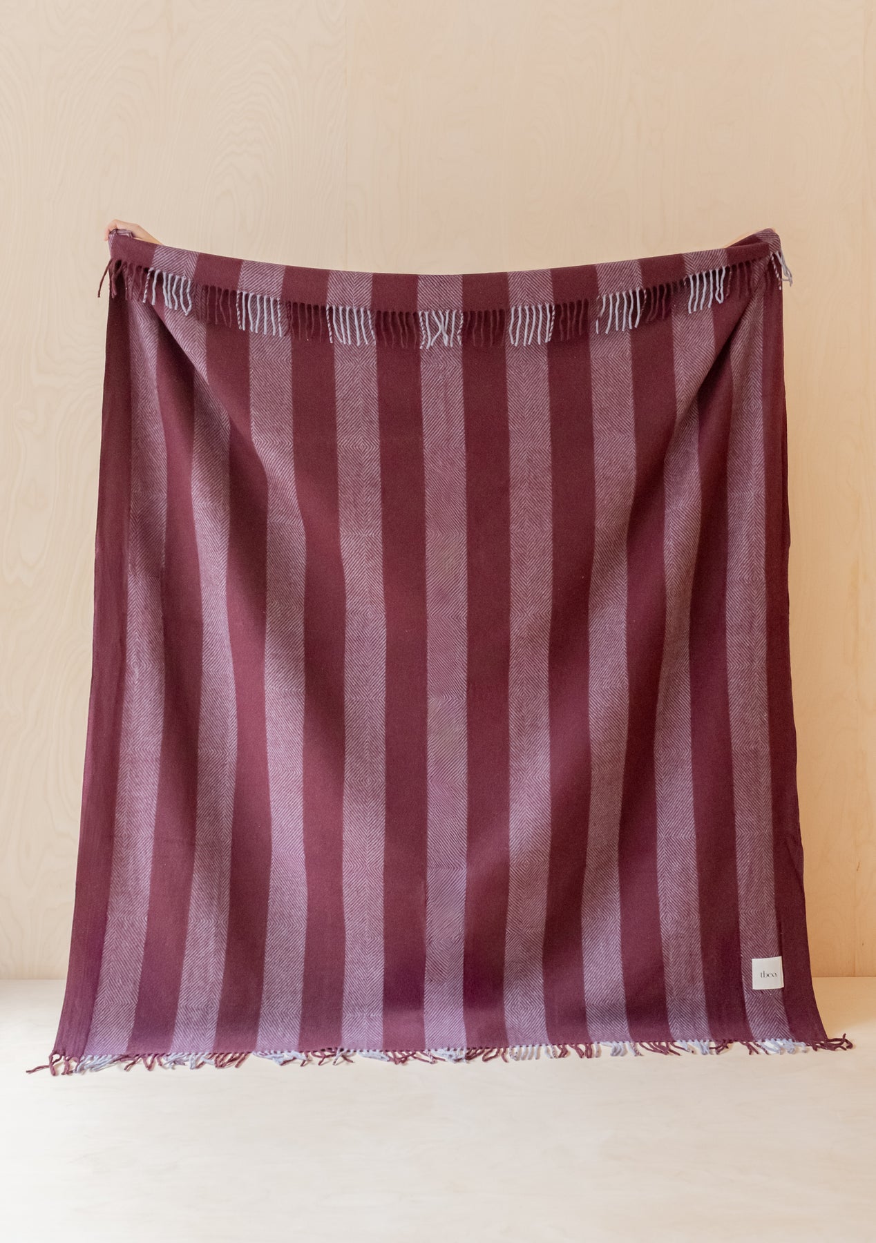 Sample Sale Recycled Wool Blanket in Blue & Burgundy Diamond Stripe