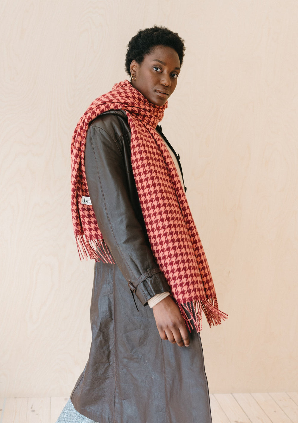 Lambswool Blanket Scarf Berry Houndstooth