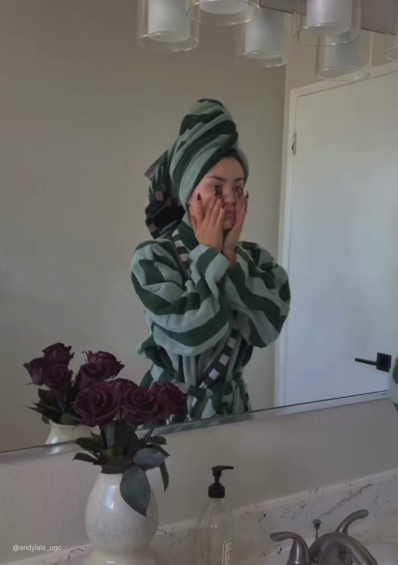 Terry Cotton Bath Robe Green Stripe