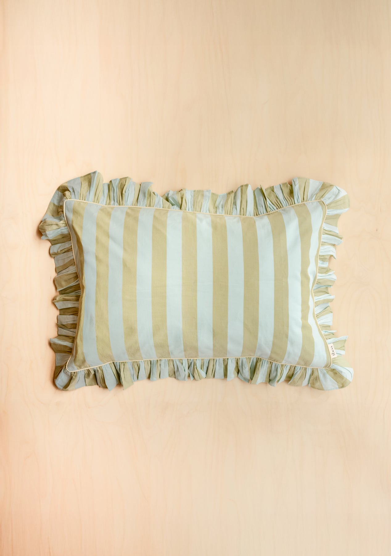 Transformez instantanément votre chambre avec cette parure de lit vert menthe et bleu, comprenant une housse de couette rayée à volants, un passepoil jaune contrastant et deux taies d'oreiller assorties. Le coton doux et respirant vous garantit des nuits paisibles. Idéal pour des soirées cocooning et des matins tranquilles. Un sac de rangement est inclus.