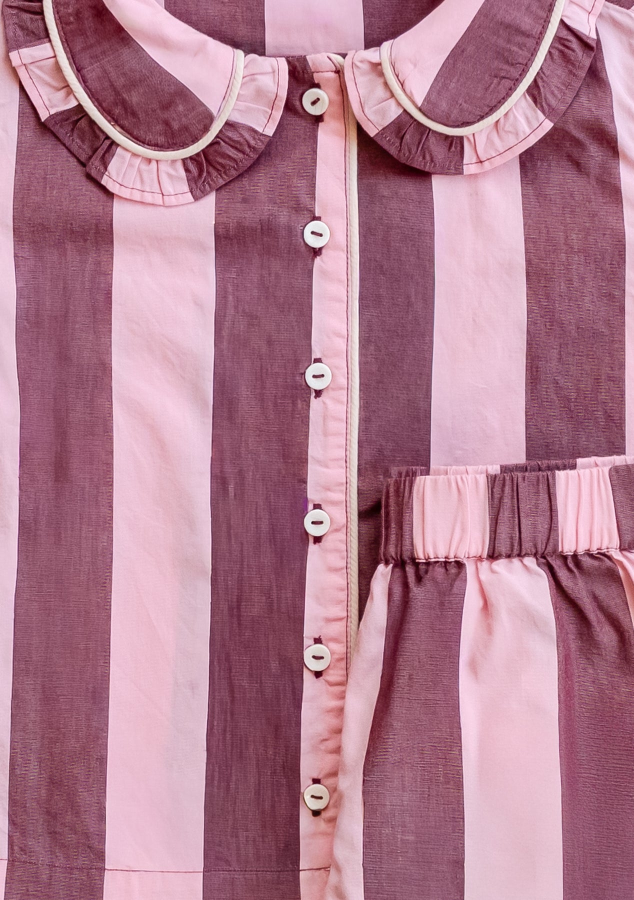 Cotton Kids Pyjamas Pink & Burgundy Stripe